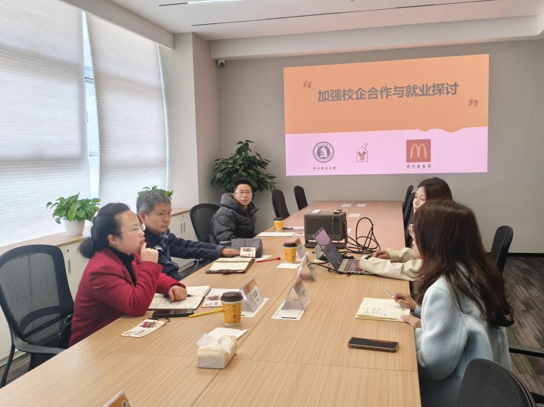 本网讯 为进一步深化产教融合,拓展毕业生就业渠道,探索校企协同育人新模式,3月18日,公司党委副书记张静、副经理谢坚、教师代表朱朝健一行前往贵州禾唛餐饮有限公司开展访企拓岗专项调研交流活动,双方就人才培养、实习就业基地建设及校企深度合作等事宜进行深入座谈。