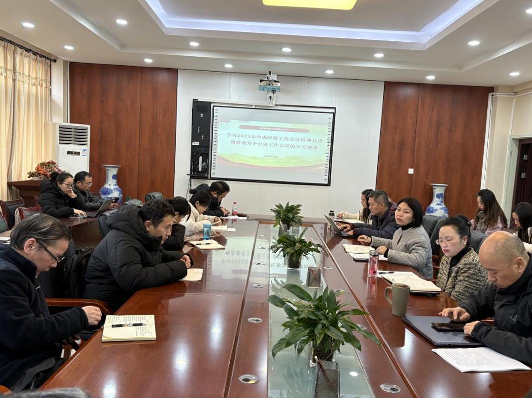 本网讯 1月5日,公司组织开展2026年度第一次全体教职工政治理论学习。公司党委书记、经理黄丹主持学习,全体教职工参会。会议传达了2025年中央经济工作会议对当前经济形势的科学判断,以及对2026年经济工作的系统部署,深入学习了国家主席习近平发表的2026年新年贺词。本次学习旨在及时传达和深入领会党中央对经济工作的最新决策部署与国家领导人的新年展望。